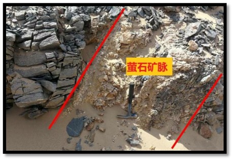 3.鉆孔中含礦巖石發(fā)現(xiàn):在砂礫巖中發(fā)現(xiàn)細(xì)網(wǎng)脈螢石脈和螢石充填的角礫巖,表明最晚期螢石礦成礦期可以推到白堊紀(jì)后。在今后的找礦中,可以注意在砂礫巖中尋找砂礫巖型的螢石礦