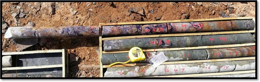 螢石礦體沿控礦斷裂構(gòu)造呈似板狀、透鏡體或扁豆體分布。目前槽鉆探工程揭露控制的螢石成礦帶有 5 條,其中 1、4 和 6號(hào)礦體規(guī)模較大,沿走向控制長(zhǎng)度分別為 800m、400m 和 450m,寬度在 0.3‐8m 之間。其余礦體長(zhǎng)度在幾十米至100 多米之間不等。鉆孔揭露礦體最大延伸深度為 270 多米。